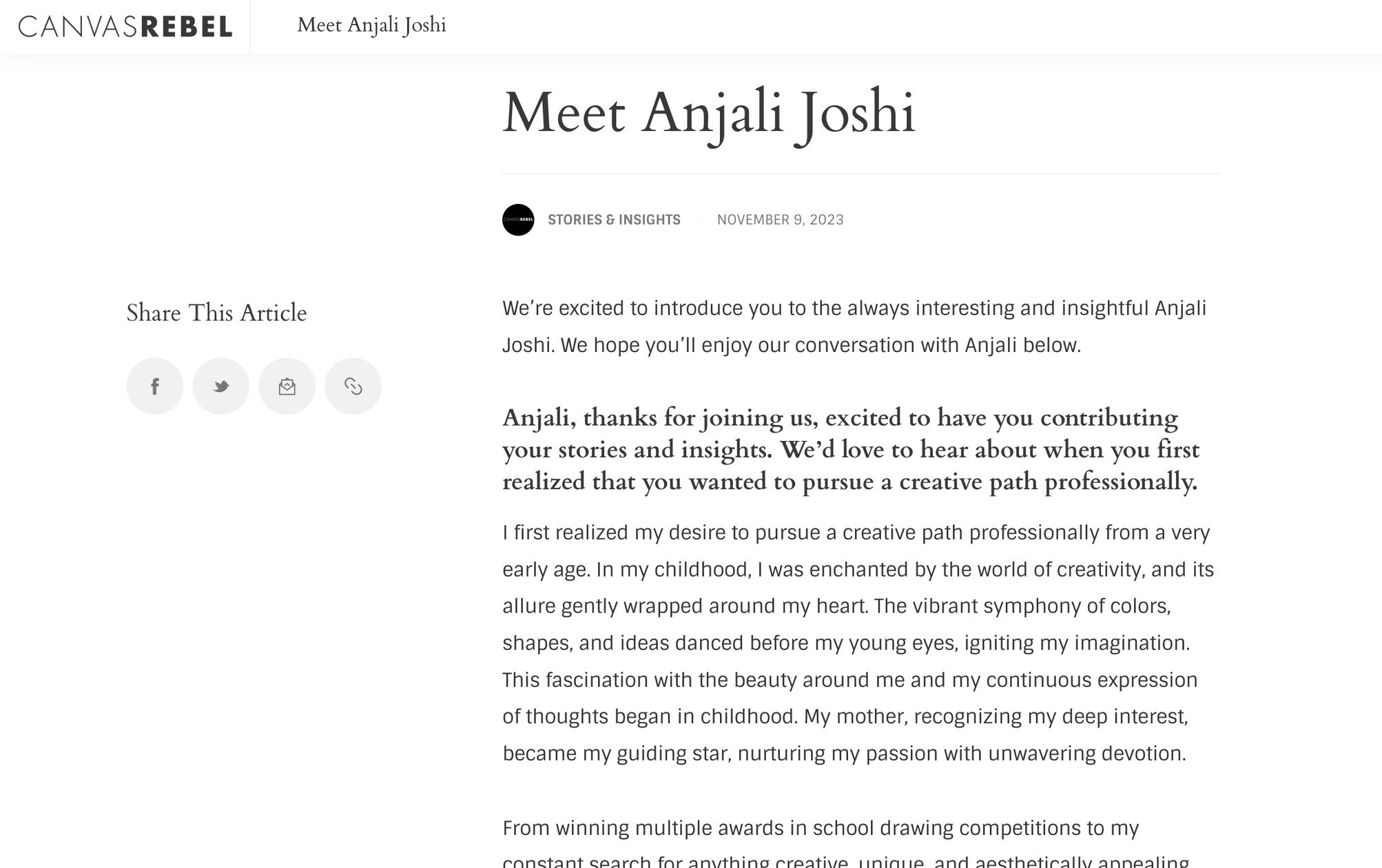 Check out Anjali Joshi’s Story - Inspiring Stories series. Hidden Gem Interviews