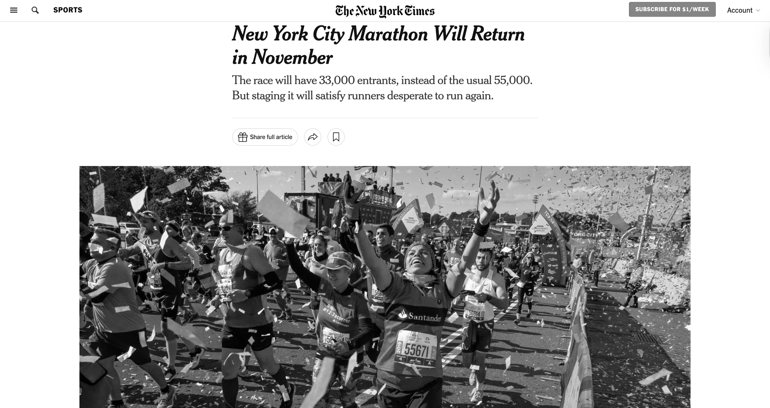 The NYC marathon will return in November. The race will have 33,000 entrants, instead of the usual 55,000.