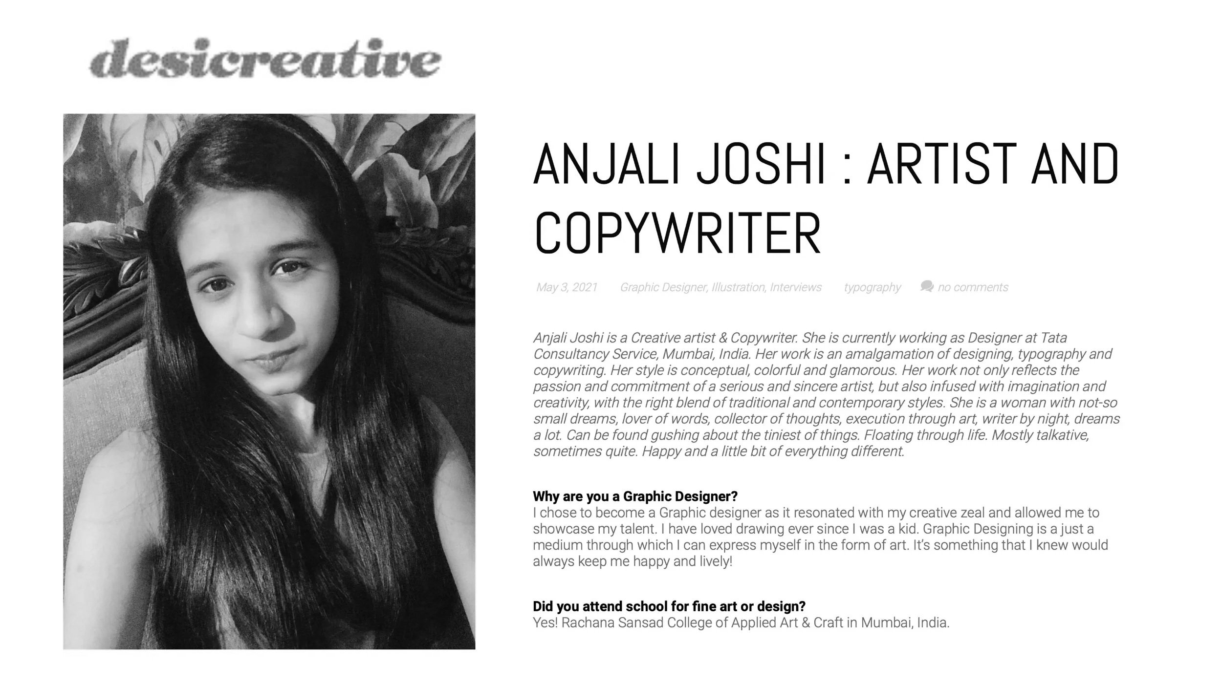 Anjali Joshi - Creative Artist & Copywriter. Category: Graphic design, illustration, typography.